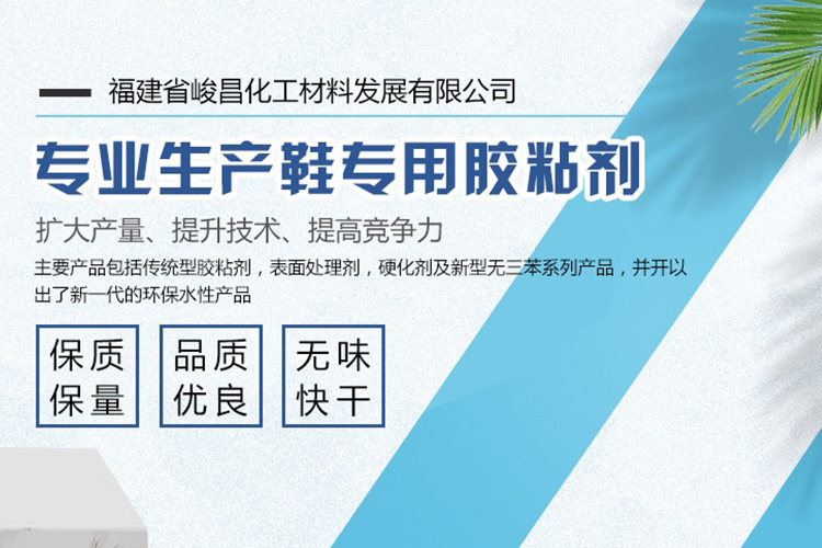 福建省峻昌化工材料發(fā)展有限公司總部設在中國鞋鄉(xiāng)——晉江。為更好、更方便服務廣大客戶,我司在廣東江門及福建均設有先進的PU膠生產(chǎn)基地,歡迎廣大同行前來我司灌裝或批發(fā)銷售。公司是一家中外合資,面向亞太地區(qū)從事研究,生產(chǎn)銷售鞋用粘膠10多年的專業(yè)公司。從國外引進生產(chǎn)能力為數(shù)萬噸的全套先進生產(chǎn),檢驗設備,與德國Bayer,日本DENKA及美國,西班牙等其它海外公司有著密切的原材料及技術合作。公司主要產(chǎn)品包括傳統(tǒng)型膠粘劑,表面處理劑,硬化劑及新型無三苯系列產(chǎn)品,并開以出了新一代的環(huán)保水性產(chǎn)品。供應國內(nèi)外鞋業(yè),手提箱包及建筑工程單位使用。公司始終保持產(chǎn)品的良好品質(zhì)及專業(yè)特性,并倍受廣大客戶好評。